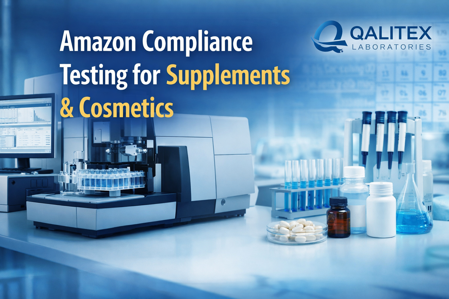 IRVINE, CA, UNITED STATES, March 19, 2026 /EINPresswire.com/ -- Qalitex Laboratories, an ISO 17025-accredited third-party testing laboratory serving Amazon FBA supplement and beauty sellers across North America, today outlined the documentation and testing requirements Amazon Seller Central requires for dietary supplements and cosmetics — and the efficient approach that helps sellers meet these requirements.Amazon has significantly expanded its compliance programs in recent years. Sellers of dietary supplements—including vitamins, minerals, herbal supplements, protein powders, and sports nutrition—must now provide Certificates of Analysis (COAs) from ISO-accredited laboratories. Cosmetics and personal care products require documentation such as microbiology reports, stability testing, and in certain cases, heavy metal analysis.